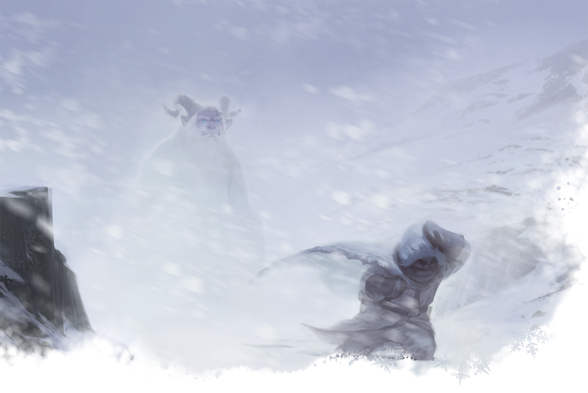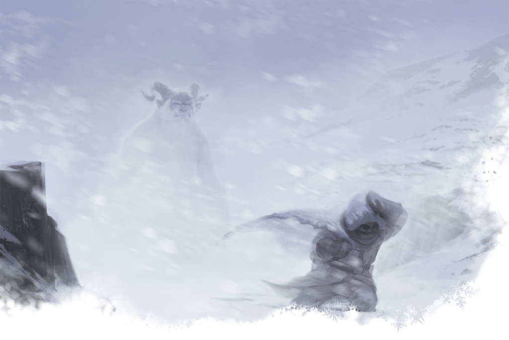 Aurora sudah tak terlihat di langit ketika para jagoan kita meninggalkan Bryn Shander. Untuk pertama kalinya, Hektor dengan kemampuan ranger-nya memimpin para jagoan kita bersama-sama menuju alam liar Icewind Dale. Di tengah jalan, tiba-tiba mereka terperangkap di sebuah badai salju yang sepertinya akan berlangsung selama empat jam! Snowflake menggunakan Wild Shape pertamanya untuk berubah menjadi rusa kutub untuk membantu para jagoan kita melewati badai salju ini.
